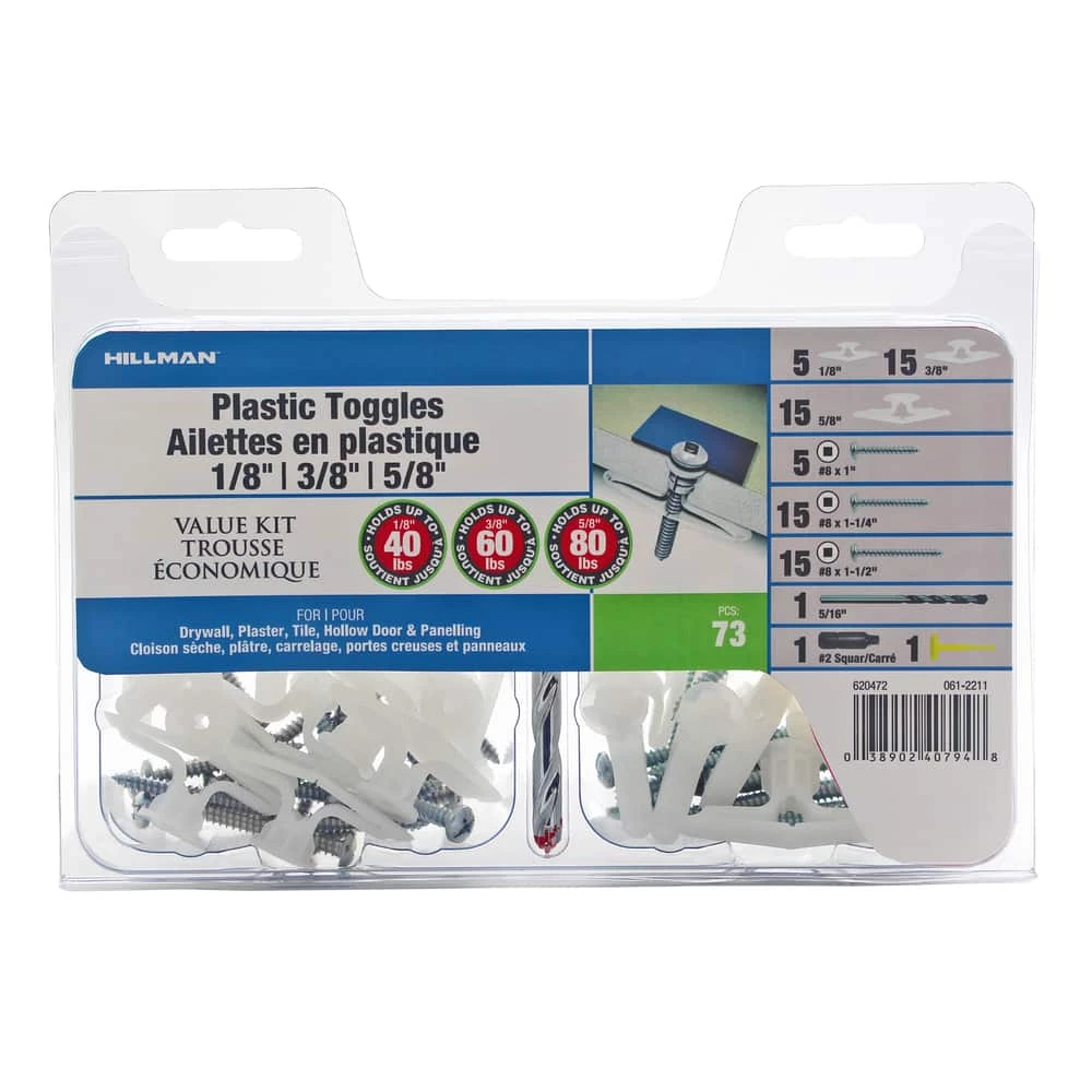 - Hillman #8 Plastic Toggle Kit is a medium-duty anchor option for drywall, plaster, tile, hollow wall, and panelling