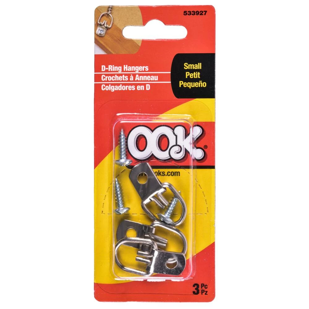 - Contents: D-Ring Hangers (3), screws (3)